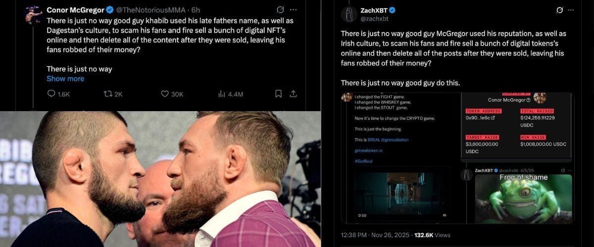 UFC star Conor McGregor criticized Khabib Nurmagomedov’s NFT drop featuring digital papakhas, accusing him of exploiting his heritage and late father’s name. Crypto analyst ZachXBT fired back, highlighting McGregor’s own failed memecoin launch, REAL, which raised only 39% of its target before refunds were issued.